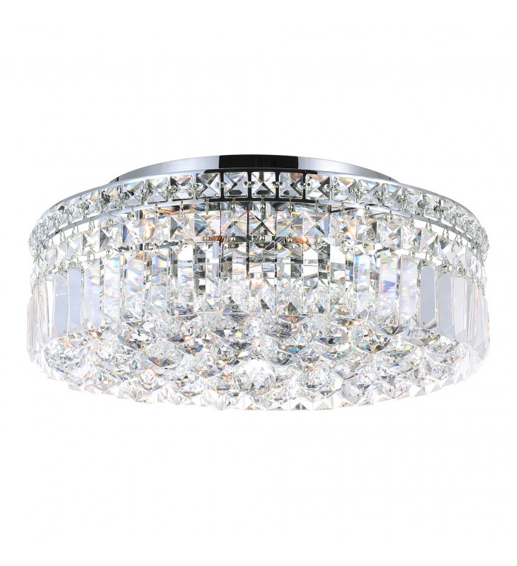 The Round Colosseum 5 Light Flush Mount stands out with style and sophistication. This circular 16 inch light source that is mounted close to the ceiling delivers a glamorous glow. It features a chrome-finished hardware requiring five candelabra bulbs that will deliver light to be reflected and refracted by clear crystals.
