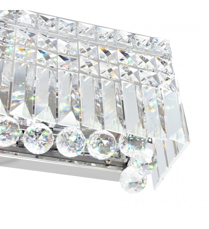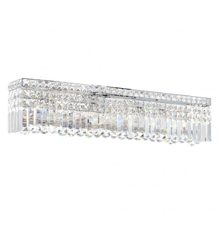 A 30 inch long vanity light, the Colosseum 7 Light Wall Sconce has enough radiance to make a cramped space appear bigger and more luxurious. This vanity light requires seven candelabra bulbs and a neat and clean wall space where it can shine without competition. Use this crystal-covered light source to instantly create a high-end hotel bathroom right in your own humble abode.