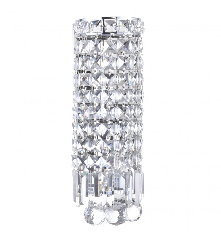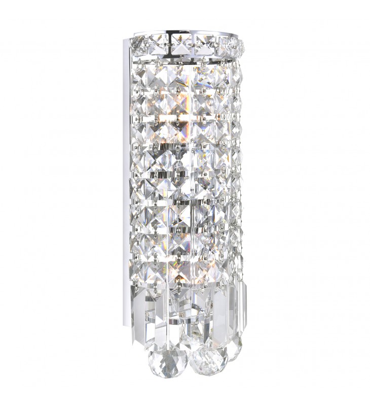 Love that high-end custom bathroom style? Achieve it effortlessly simply by adding a pair of the Colosseum 2 Light Wall Sconce. This wall-mounted bathroom lighting option measures 12 inches tall and 5 inches wide and is covered in faceted clear crystals. Place one on either side of a mirror and get a flattering glow each time you gaze at yourself.