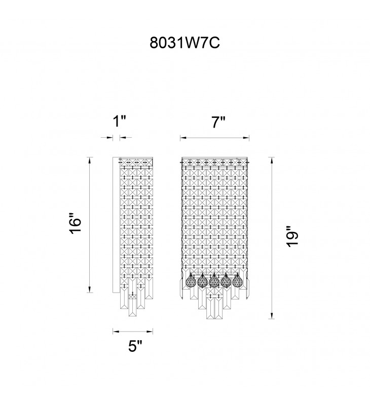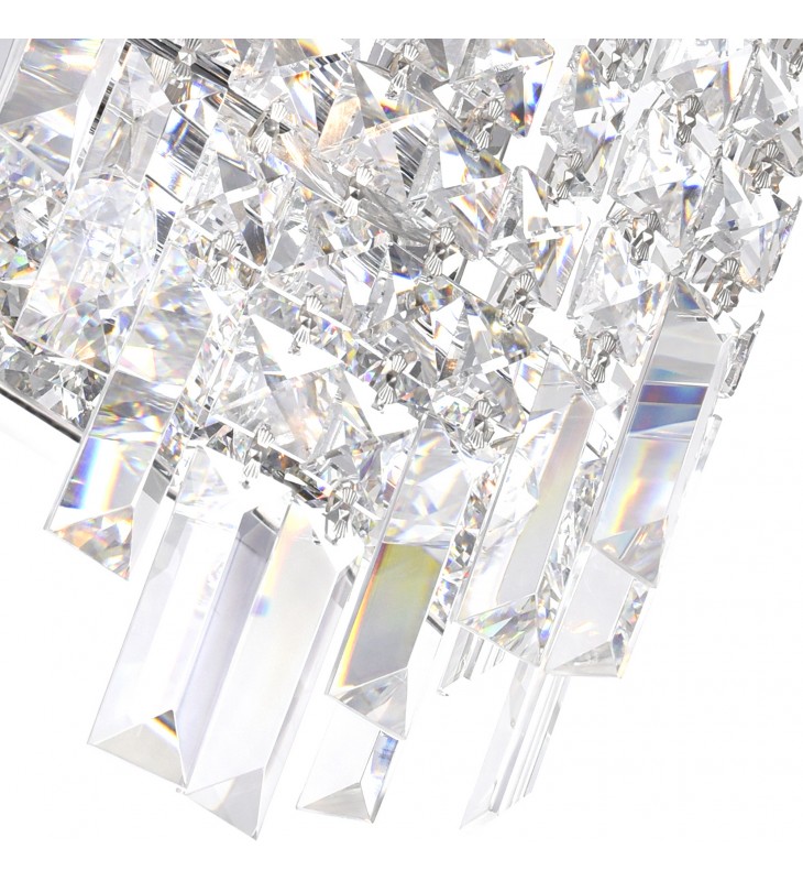 A highly versatile, decorative light source that can give any old space a new look. The rectangular Colosseum 4 Light Wall Sconce measures 19 inches tall and 7 inches wide. It is covered with faceted crystals in varying shapes and sizes. This glam wall light would make a brilliant light fixture and decor in a hallway, entryway, dining room, living room, or bathroom.
