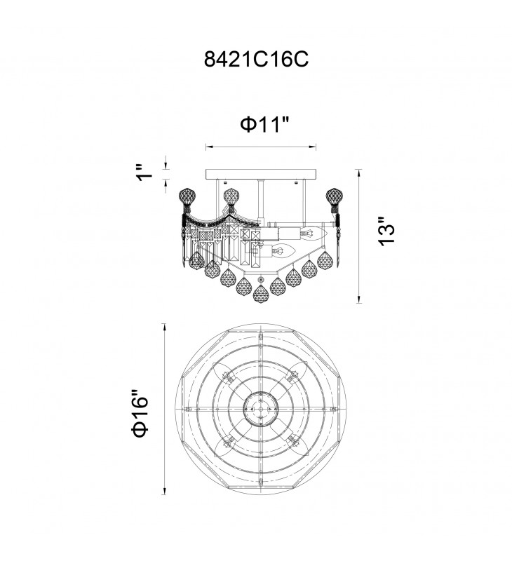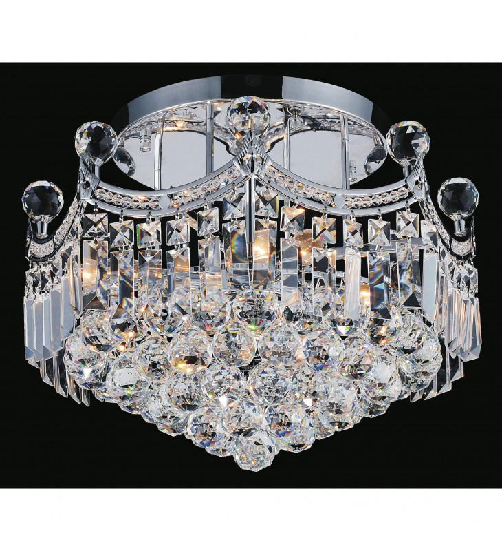 Elevate the luxury of your space with the Amanda 6 Light FLush Mount. This crystal-adorned light source features a circular silhouette measuring 16 inches in diameter. Crystals in varying shapes and sizes drop from a shapely chrome-finished frame still punctuated with faceted crystals. This lighting option is suitable for areas with low-ceilings and in narrow spaces like hallways and corridors.