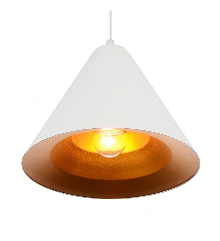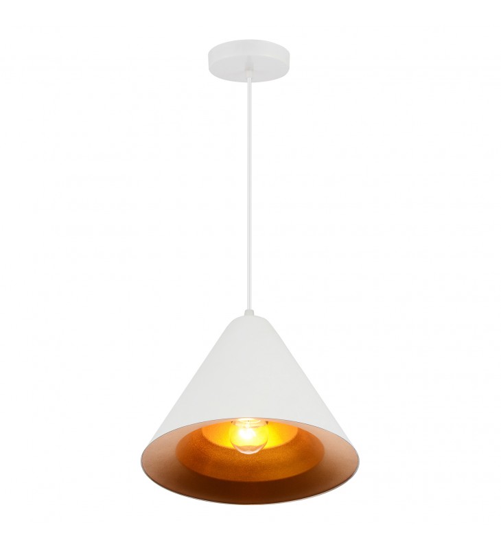 The Keila 1 Light Pendant in Matte White and Gold is a glamorously chic light source. This down pendant light fixture has a conical shade in neat white. It holds a single bulb that casts a warm glow with a little help from the gold-finished interior of the shade. This mini pendant will fit modern and contemporary spaces as well as rustic chic and modern farmhouse interiors.
