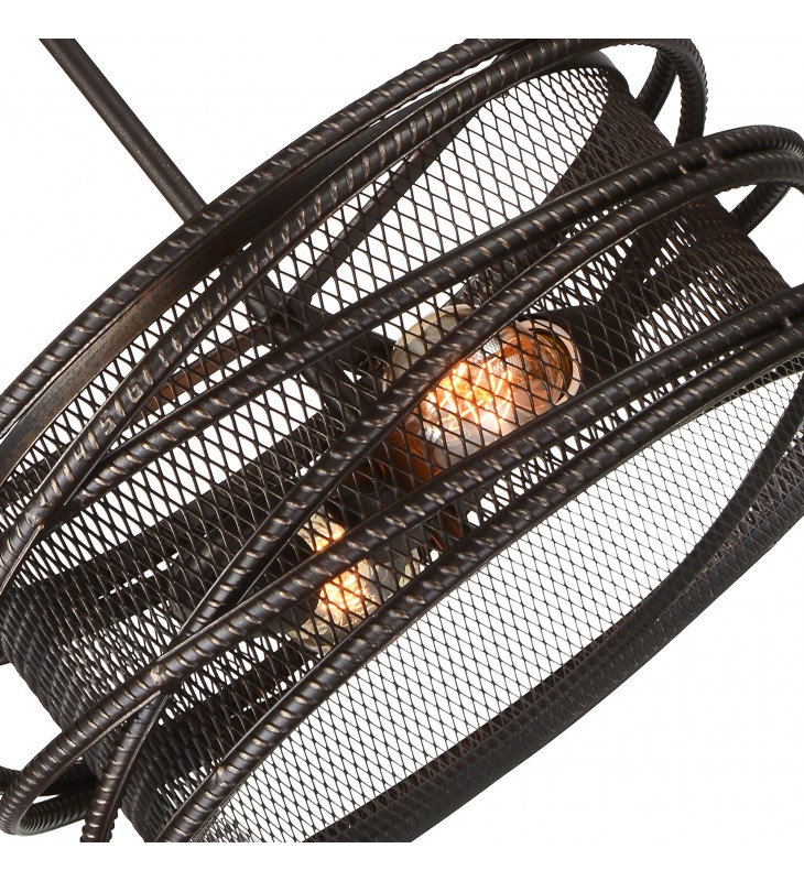 The Darya 2 Light Chandelier will make a unique industrial design element in your space. This brown pendant light features a double drum shade in openwork style, with one in mesh and the other in metal cage design. For interiors that looks decidedly rustic, pair this light fixture with exposed beams, wrought iron chairs, and vintage wall signages.