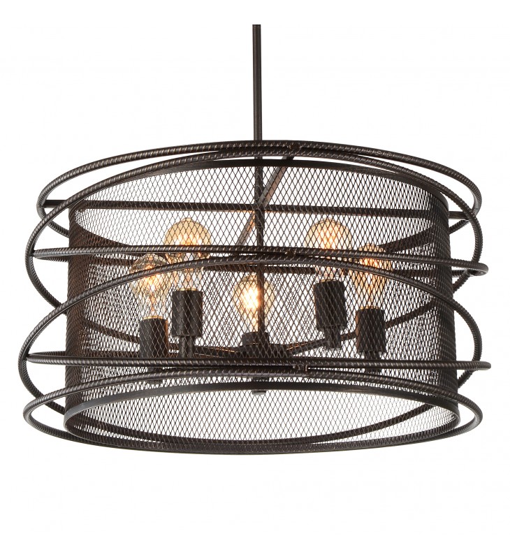 Include the Darya 5 Light Round Chandelier in your living space and easily give your humble abode a bold industrial edge. This up pendant features a mesh panel inner shade enveloped by circles of textured steel rods. Finished in a dark brown shade, this 22 inch round chandelier with five bulbs will most likely also bring a touch of welcoming warmth to your space.