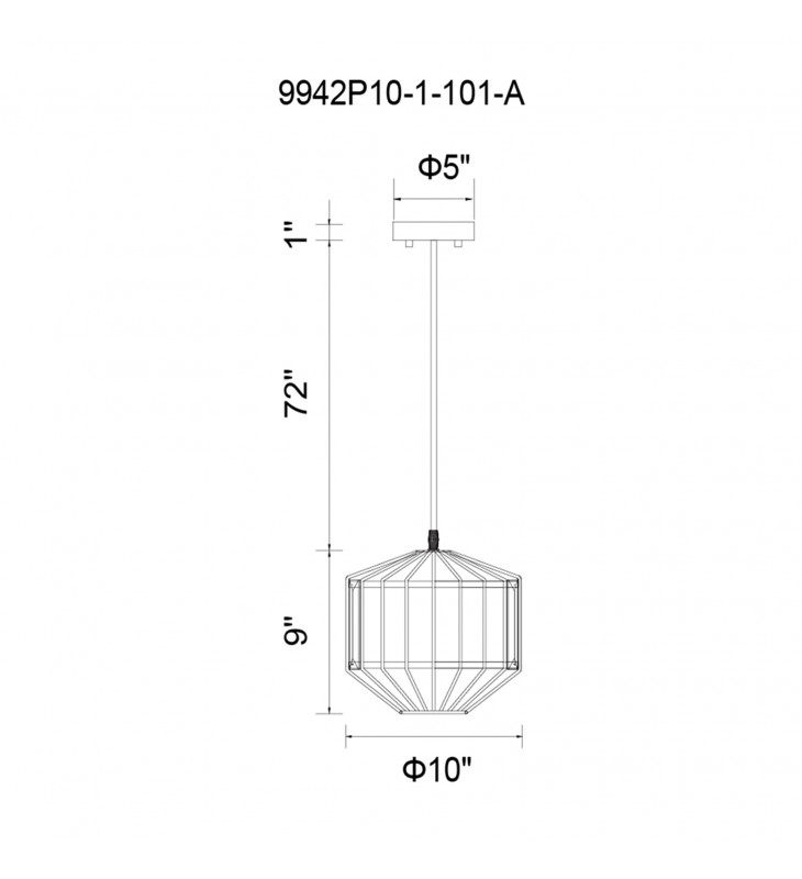 Alethia 1 Light Down Pendant With Black Finish (9942P10-1-101-A) - CWI