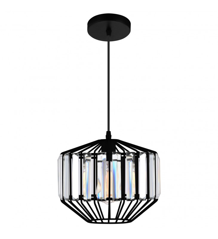 Like metal? And crystal? You don\'t have to choose one or the other this time. The Alethia 10 inch Single Bulb Down Pendant offers a design versatility that can refresh the look of many spaces. It is designed with a metal openwork shade in black adorned with faceted clear crystals that help diffuse a soft glow. This light source will fit just about any room and can enhance the ambiance in many different interior design schemes.