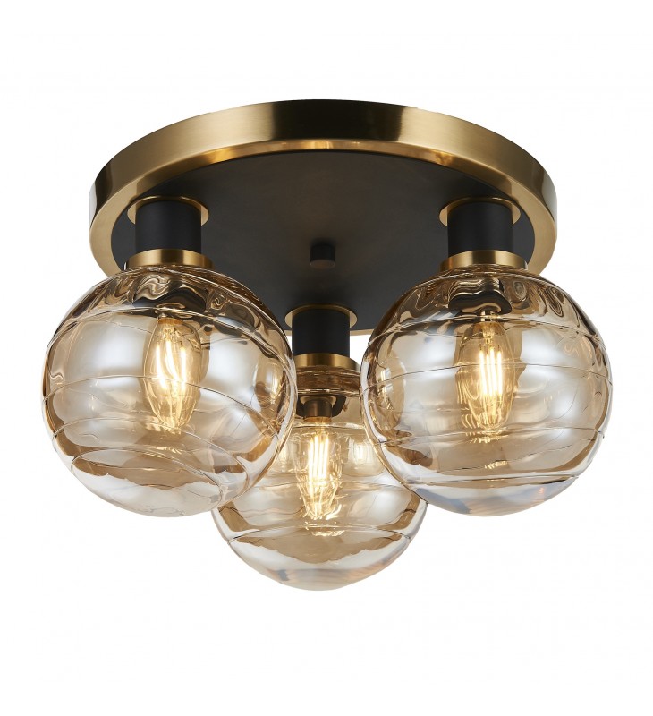 Gem Collection 3-Light Semi-Flush Mount with Amber Glass Black and Brushed Brass-(AC11873AM)-Artcraft