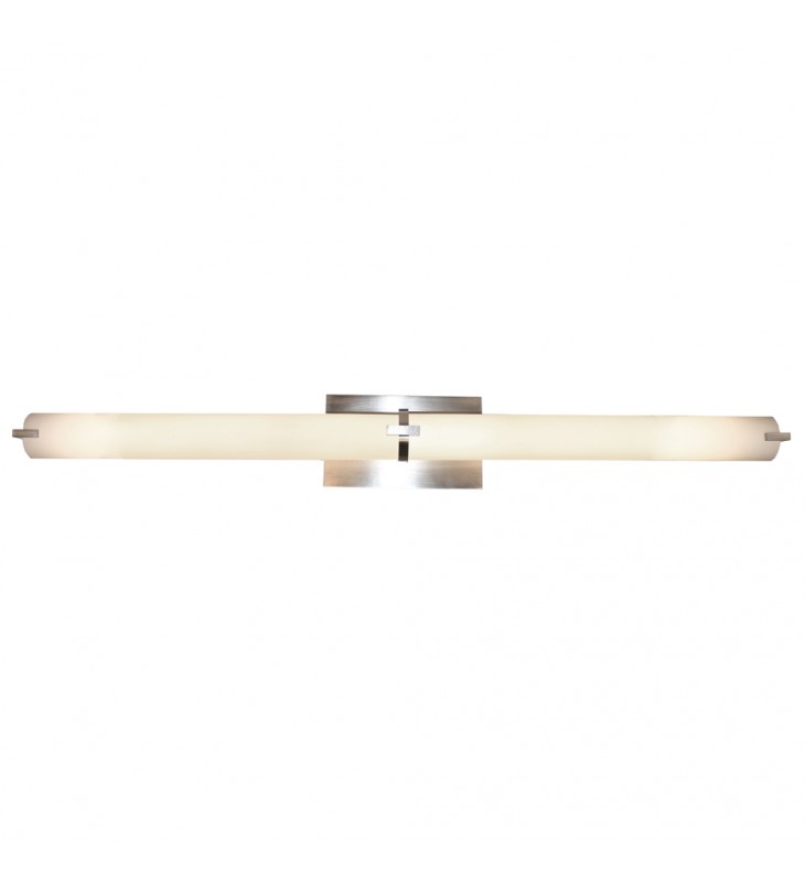 Modern and clean in design, this LED bathroom vanity is made of frosted glass on the front and the back plate is made of clear beveled glassware. LED is dimmable.\n \n \n \n