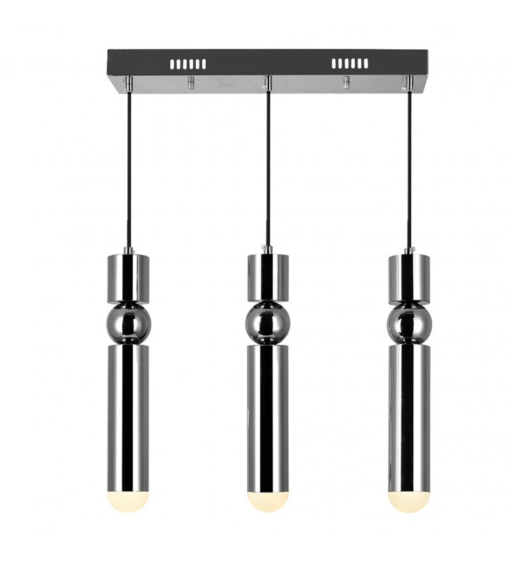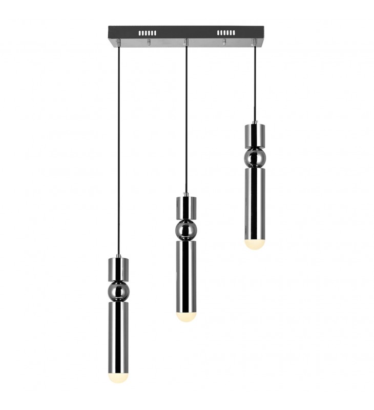 A modern lighting option, the Chime 3 Light Polished Nickel Chandelier impresses with its sleek and slender tubular suspensions held in place by a rectangular canopy. Designed with integrated LED, this light source provides energy-saving illumination and is the perfect choice for task lighting in the kitchen. Integrate this easily in your food preparation area by adjusting the height according to your space and design requirement.
