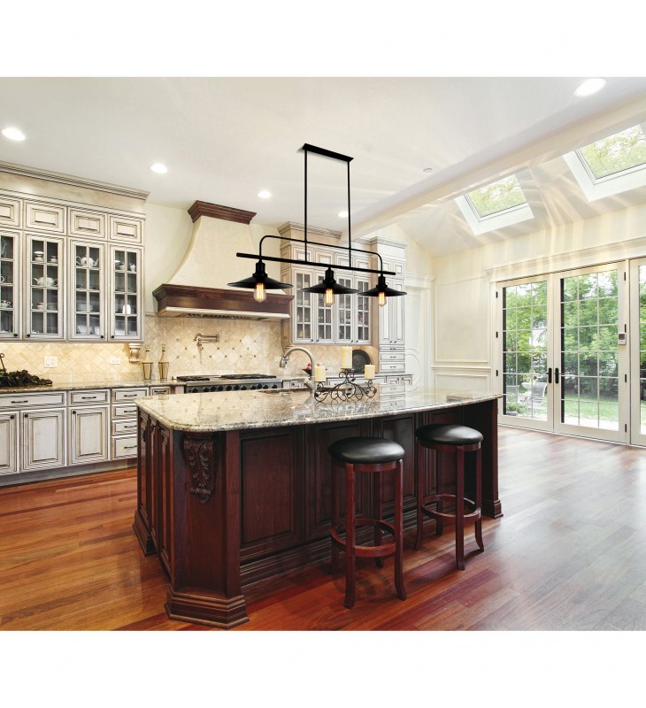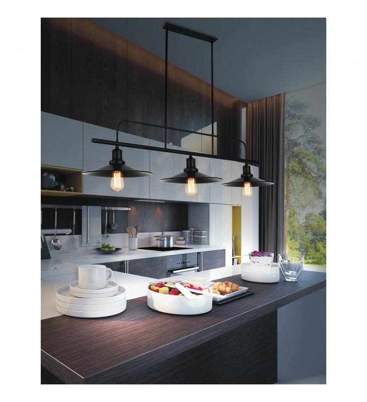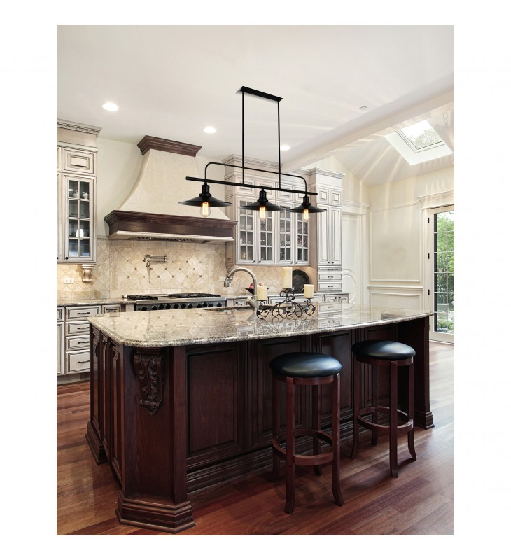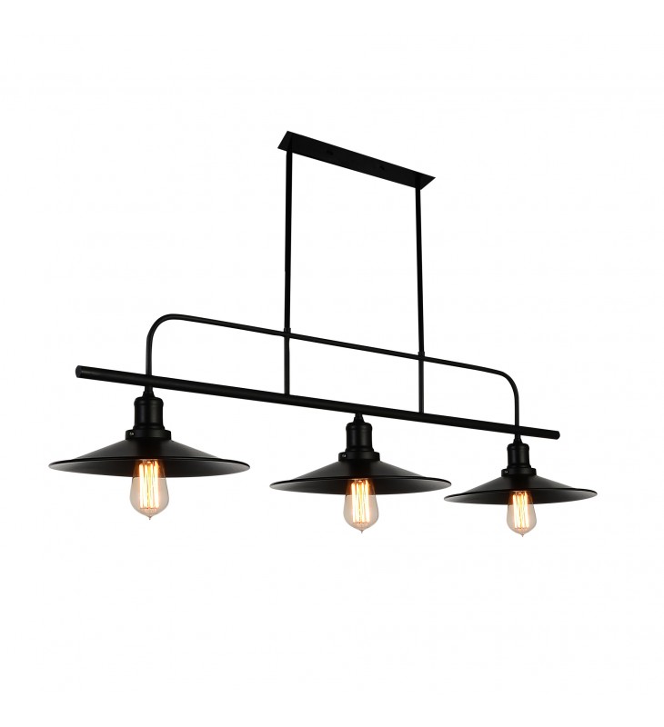 Go bold with your lighting choice. The Brave 3 Light Chandelier is a beautiful pool table or kitchen island light fixture that can make any space look Instagrammable. The exquisitely crafted triangular shade is finished in black and can effortlessly provide depth and dimension to your home.