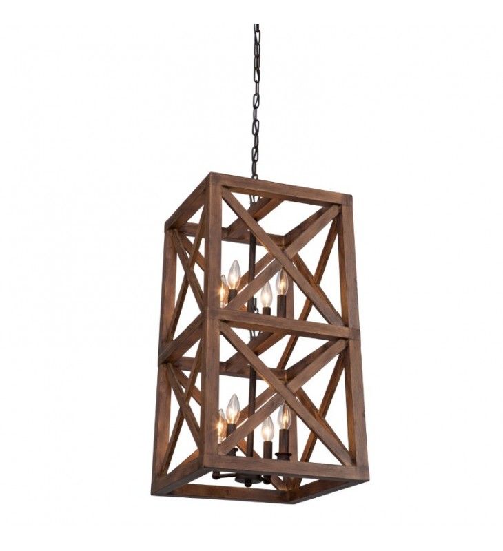 The Collingwood collection by Jo Alcorn features an authentic wooden cage in a walnut finish. (8 light pendant)\n \n \n \n