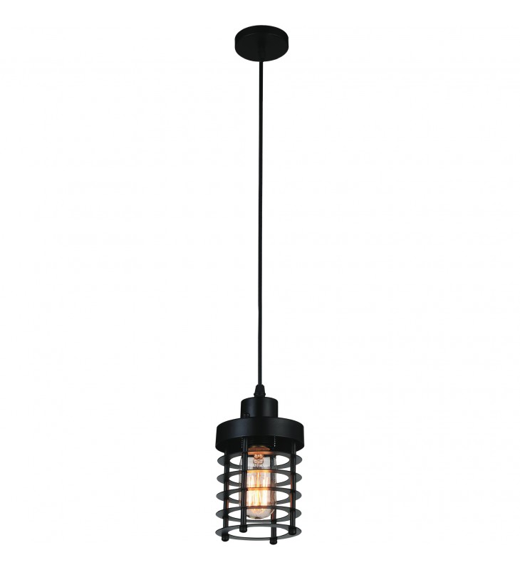 Add a dash of rustic to your home interiors with the Bray 1 Light Pendant. This light source features a black metal shade in cylindrical shape with openwork cage-like profile to make the E26 bulb shine. The exposed bulb complete the old-fashioned look of this down mini pendant. Whether hung singly or in multiples, this light source can bring a warm illumination to wherever it is placed.