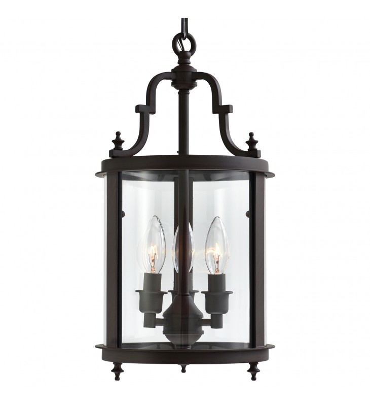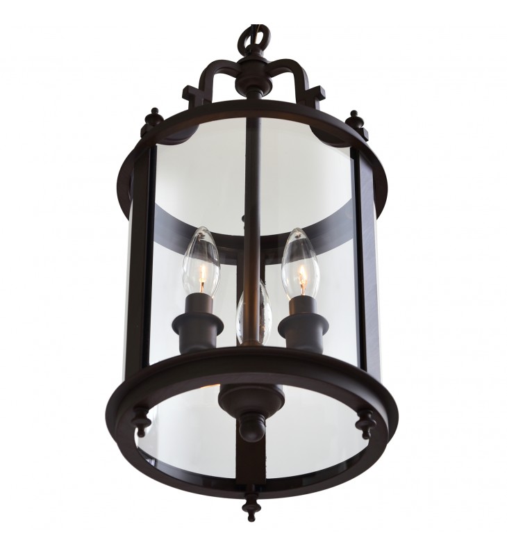It\'s impossible to not like this drum shade lantern. The Desire 3 Light Pendant holds a metal candelabra frame encased in a clear glass shade that takes the shape and style of a vintage lantern. Expect this 9 inch fixture to light the night with a soft glow and an ambient mood.