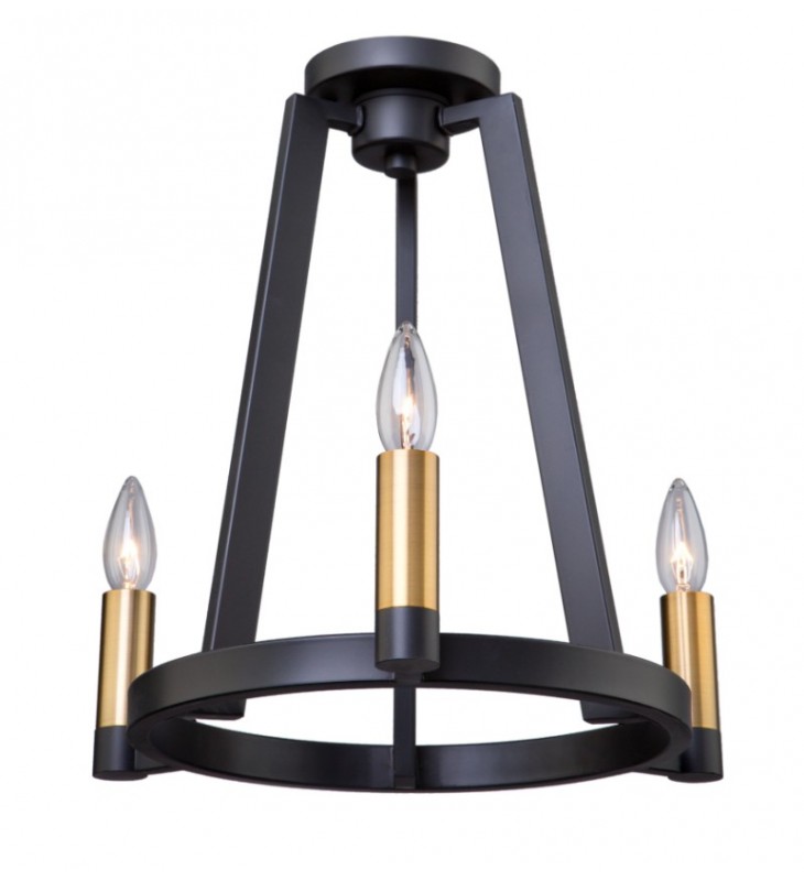 Simple and elegant, the two tone \"Regent Collection\" is timeless. The beautiful black frame is complimented with satin brass candle covers. Many sizes available. (Comes with extra rods for height adjustment and hangstraight for sloped ceilings)