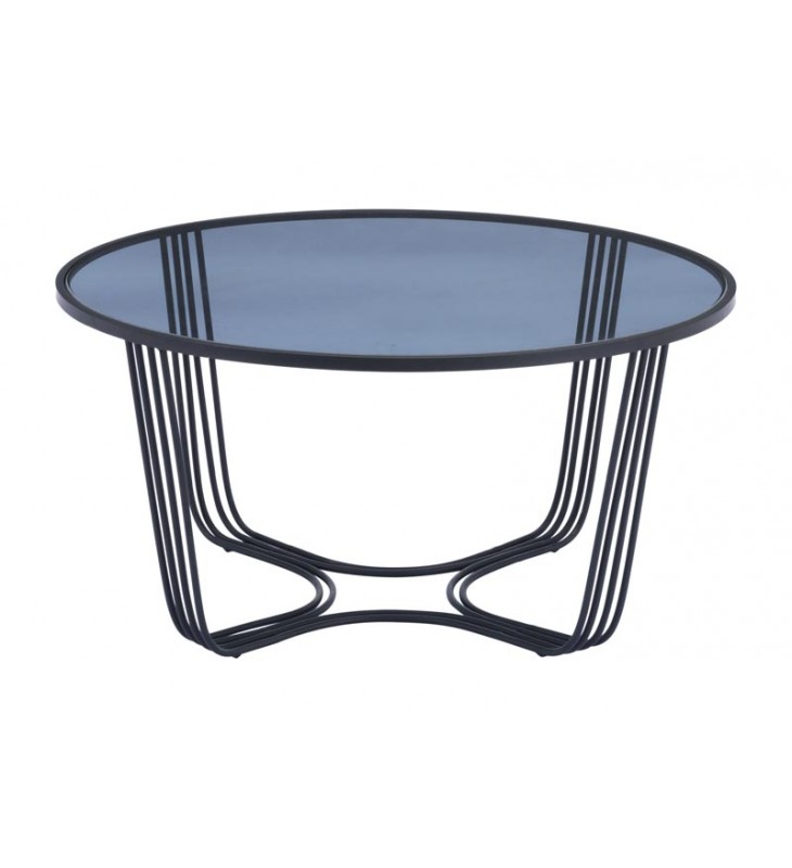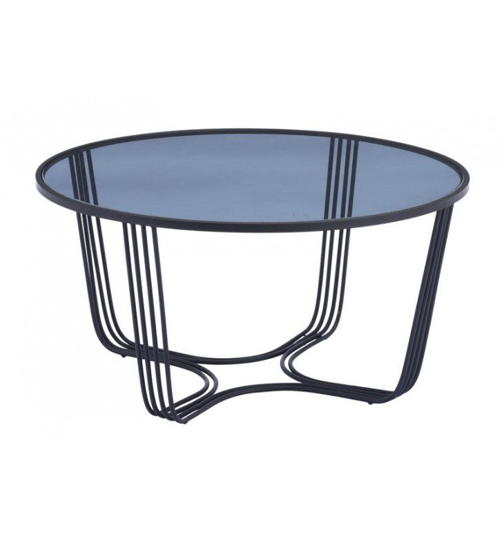 This handsome round coffee table is dressed up in black for a beautiful living room accent. Its sheer black top rest on its striking curved base. A low profile makes it ultra modern. Accessorize it with your favorite objects or keep it simple to appreciate it artistic form. Pair it with the matching side table (sold separately) for a dynamic duo.
