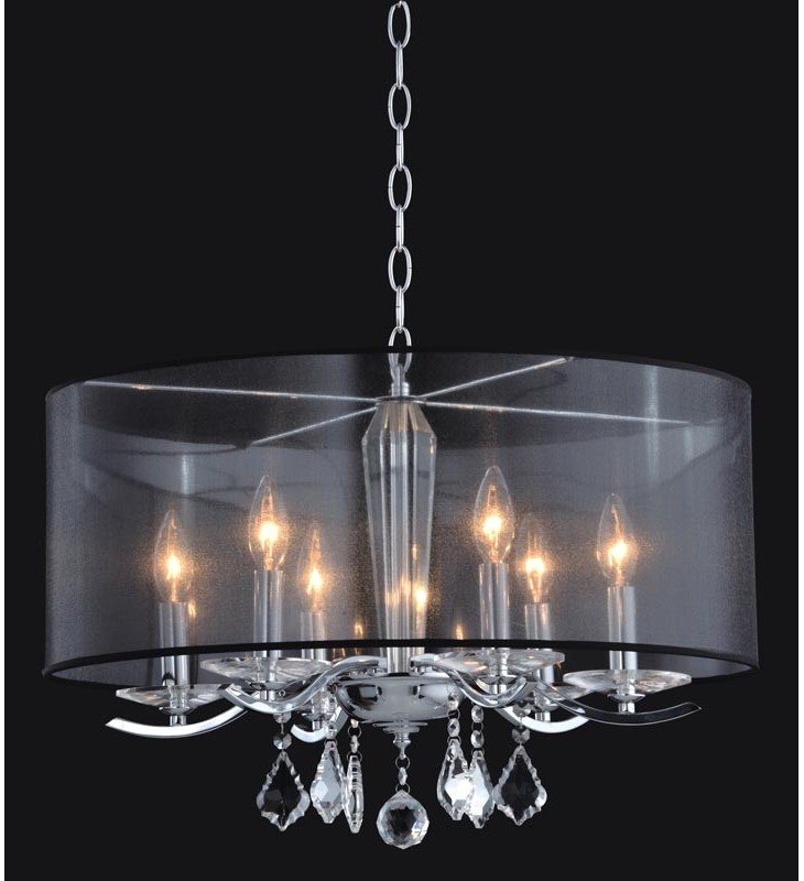 6 Light crystal chandelier (E12) candelabra 40w black organza shade w/chains (1132C6-BK)