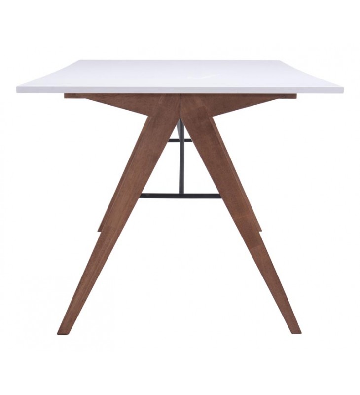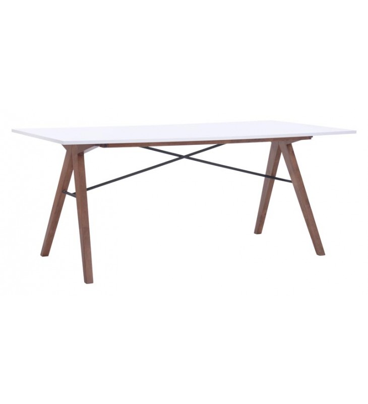 Update to Mid-Century Modern perfection as the Saints dining table features warm walnut wood finishes and black metal accents to saw-horse style base contrasted by stark white MDF rectangular top. The Saints collection includes desk, occasional side, coffee and dining table versions.