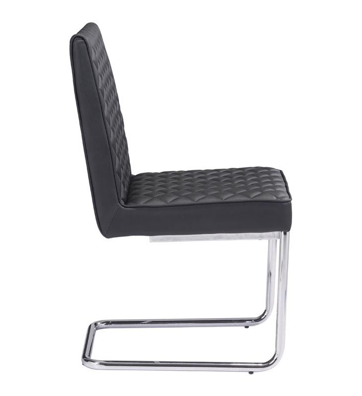 Quilt armless dining chair offers a sleek modern canter leaver design with soft leatherette featuring quilted detailed upholstery to both plush seat and back design. Perfect for formal dining or accents for home or office. Color options are black and white.