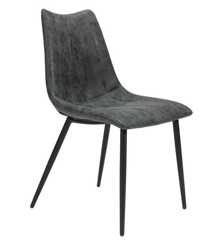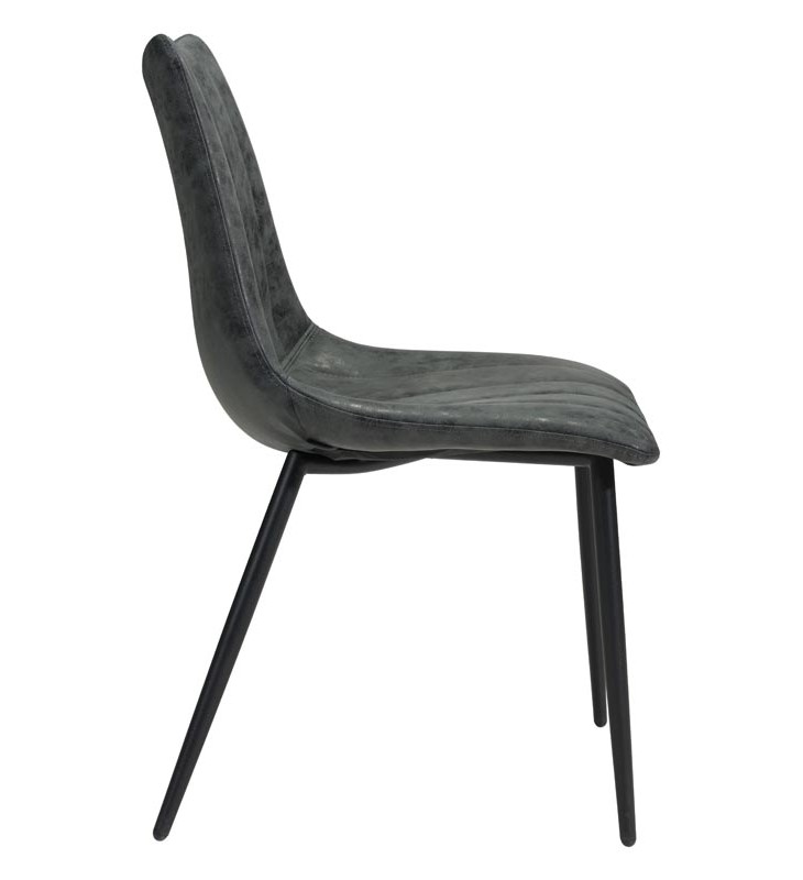 This scoop style chair in vintage black faux leather is perfect for a casual dining space. Channel tufting and top stitching are the designer details that make it a stand out piece. Molded back and seat give it the comfort that will keep you lingering around the table. Also available in brown faux leather.