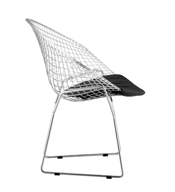 The Net dining chair is 100% solid chrome and has two cushion choices: black or white.