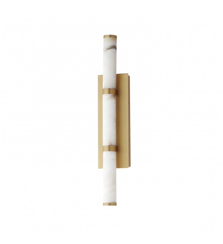 Featuring carved Spanish Alabaster shades in sleek cylindrical forms, the Aragon collection conceals high-powered LED light sources within, providing both beauty and functionality. The natural alabaster is elegantly complemented by plated Gold accents, adding an upscale, luxurious touch. Available as pendants or sconces, these fixtures are damp rated, making them ideal for interior spaces including bathrooms.