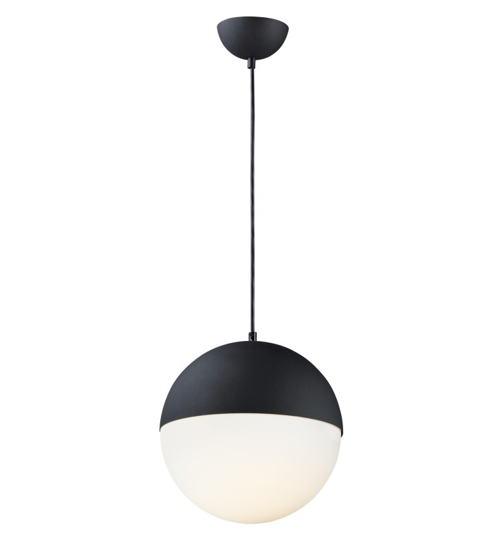 Spun metal semi spheres finished in Satin Nickel, Metallic Gold or Matte Black, cap a Satin White glass shade. Installed into each fixture is an omni-directional LED bulb that evenly illuminates the glass while providing long life operation.