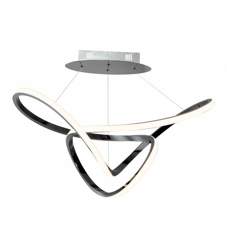 Sweeping lines curve and curl in a continuous motion, finished in a rich Brushed Champagne or Black Chrome. Not just a lighting fixture but a sculptural work of art. Gentle illumination moves in all directions for a dramatic lighting effect.