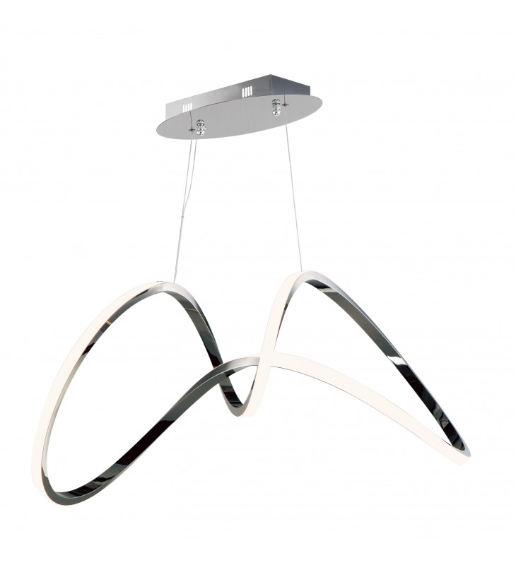 Sweeping lines curve and curl in a continuous motion, finished in a rich Brushed Champagne or Black Chrome. Not just a lighting fixture but a sculptural work of art. Gentle illumination moves in all directions for a dramatic lighting effect.