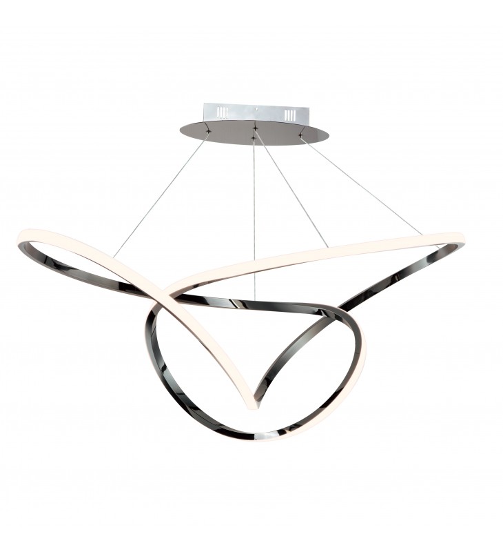 Sweeping lines curve and curl in a continuous motion, finished in a rich Brushed Champagne or Black Chrome. Not just a lighting fixture but a sculptural work of art. Gentle illumination moves in all directions for a dramatic lighting effect.
