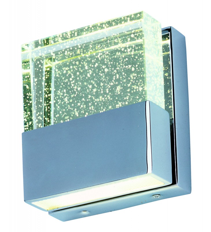 The Fizz Collection\'s effervescent bubbles encased in rectangular glass cubes come to life when illuminated by high output LEDs. The etched lines add linear detail as they extend from the Polished Chrome fitters.