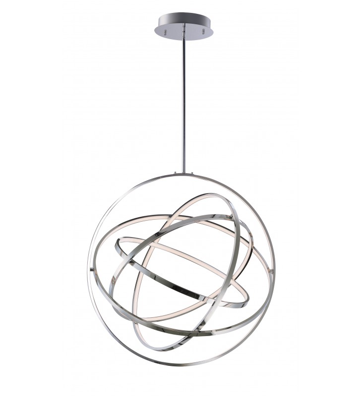 A very unique and interesting design that features concentric bands of Polished Chrome or Black that rotate on 3 axis points and adjusts in multiple directions similar to a gyro. The edge of each slender band encases a small LED strip covered by a frosted lens. This work of art is so much more than just a lighting fixture.