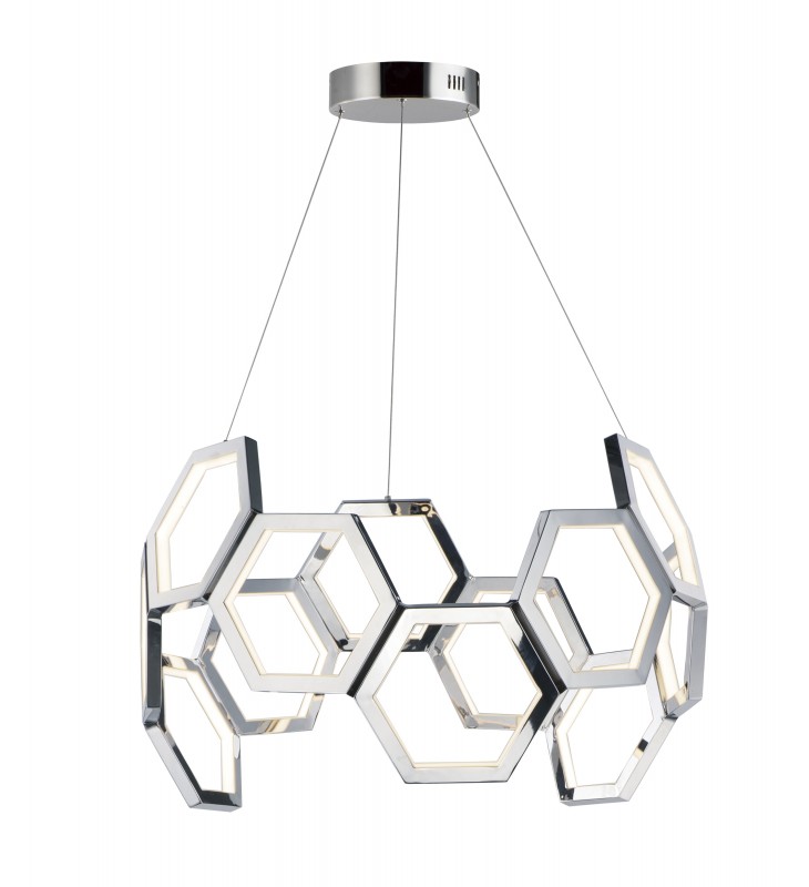 Hexagonal shaped sections of Polished Chrome are artfully attached to create this magnificent lighting form. Only a few companies in the world have the expertise to construct a fixture of this caliber.