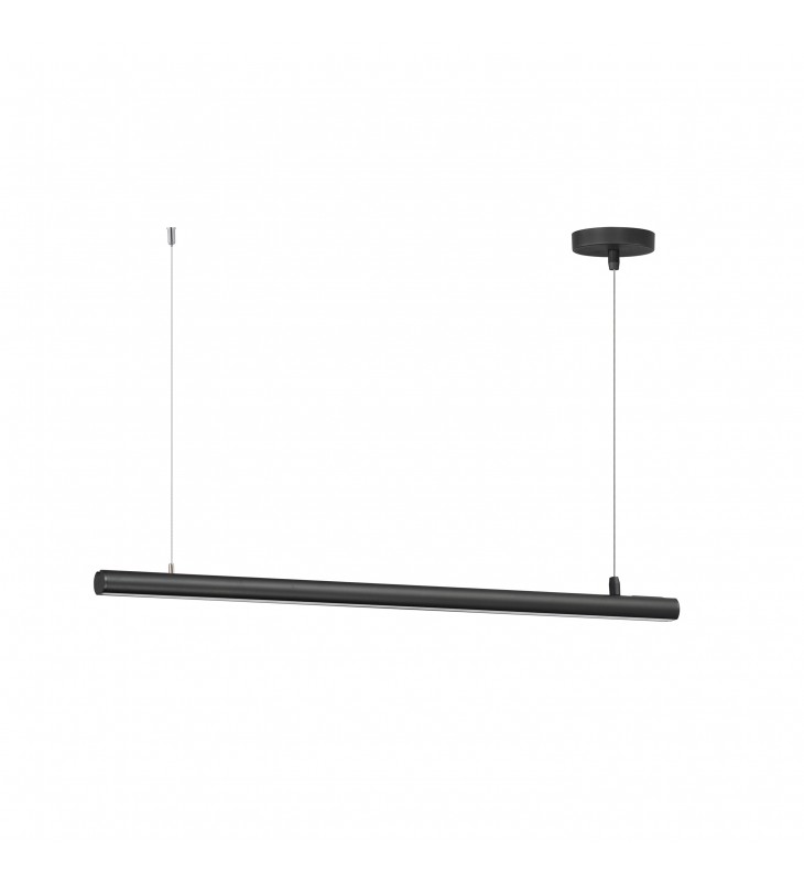 Elongated tubes of LED light are housed in incredibly small 1\" diameter aluminum and suspended by nearly invisible support cables. Engineered to connect the various lengths end-to-end or with use of the rigid, angled adapters, adds endless applications for creativity and function. Each length includes a power feed within a surface mounted canopy and non-electrical support cables that standoff using ceiling anchors. The continuous run pendants in this series are a welcome convenience for commercial applications. Lengths range from 36\" to impressive 96\" long. Individually, the fixtures provide ample lighting downward with minimal disruption to the architectural sight lines of a space. Available in Black, White, and brushed Aluminum finishes these are exemplary streamlined forms with functional purpose.