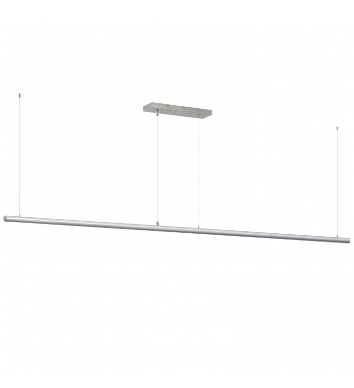 Elongated tubes of LED light are housed in incredibly small 1\" diameter aluminum and suspended by nearly invisible support cables. Engineered to connect the various lengths end-to-end or with use of the rigid, angled adapters, adds endless applications for creativity and function. Each length includes a power feed within a surface mounted canopy and non-electrical support cables that standoff using ceiling anchors. The continuous run pendants in this series are a welcome convenience for commercial applications. Lengths range from 36\" to impressive 96\" long. Individually, the fixtures provide ample lighting downward with minimal disruption to the architectural sight lines of a space. Available in Black, White, and brushed Aluminum finishes these are exemplary streamlined forms with functional purpose.