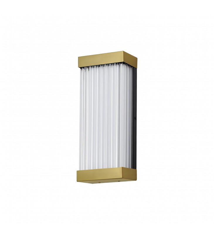 A colonnade of faceted crystal columns form these rectangular wall sconces suitable for wet locations. The crystals are backlit with an evenly distributed LED light source that is set within non-corrosive Aluminum and Stainless Steel frames. With an extension compliant for ADA applications, this collection can be used on the interior or exterior of any space.