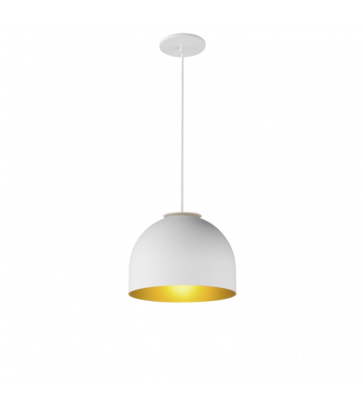At the center of these aluminum spun pendants rests an acrylic reveal opening the top of the fixture to cast light both above and from within the structure. With three size options and finish options that include Black with a gold interior, grey with a black interior, and white with a gold interior, these pendants pair well with both modern and more traditional aesthetics.