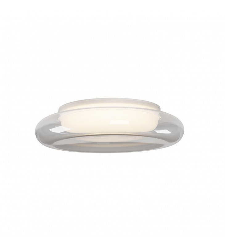 Double bubble, this series of flush mounts feature a Clear acrylic shade that encases an internal frosted shade. Integrated LED technology evenly illuminates the inner shades available in two sizes.