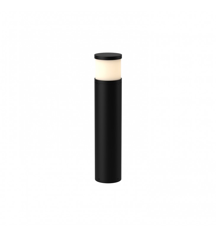 Architecturally designed high-power LED exterior bollard fixture. This die-cast aluminum cylinder has a frosted polycarbonate diffuser with thin metal halos that delivers diffused omni directional light with three base sizes and interchangeable head options.