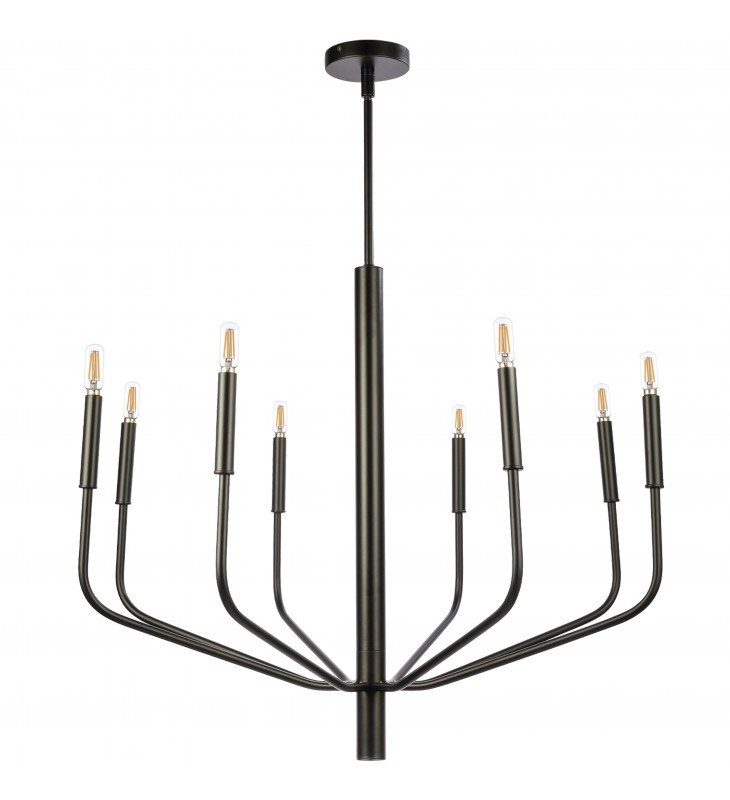 Dainolite Contemporary Eleanor Hanging in Painted Black Metal for the Ceiling with 8 bulb, E12 socket base 60 Watts max Dimmable and UL Approved for Damp Location with a 1 Year Limited warranty. Great for Living, Foyer/Hall, Dining rooms and Commercial use. Features include , ,