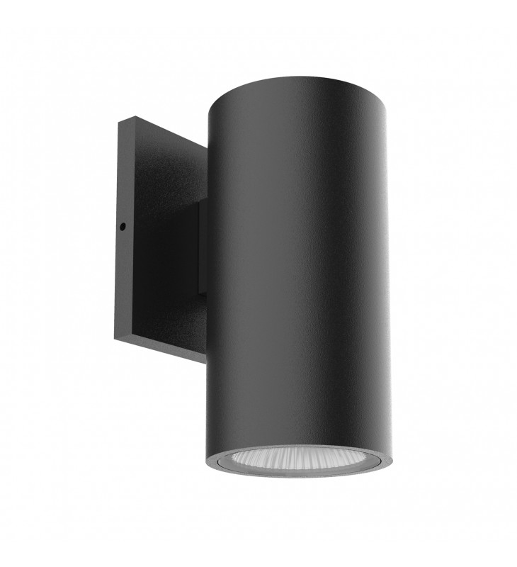 High powered LED exterior two light wall mount fixture, die-cast aluminum housing molded into a cylinder shape with in powder coated black and gray finishes. Concealed inside is our 12V AC LED technology with a tempered glass diffusers radiating light upward and downward against the wall where installed. Certified ETL wet location listed and is available in different sizes and one light options.