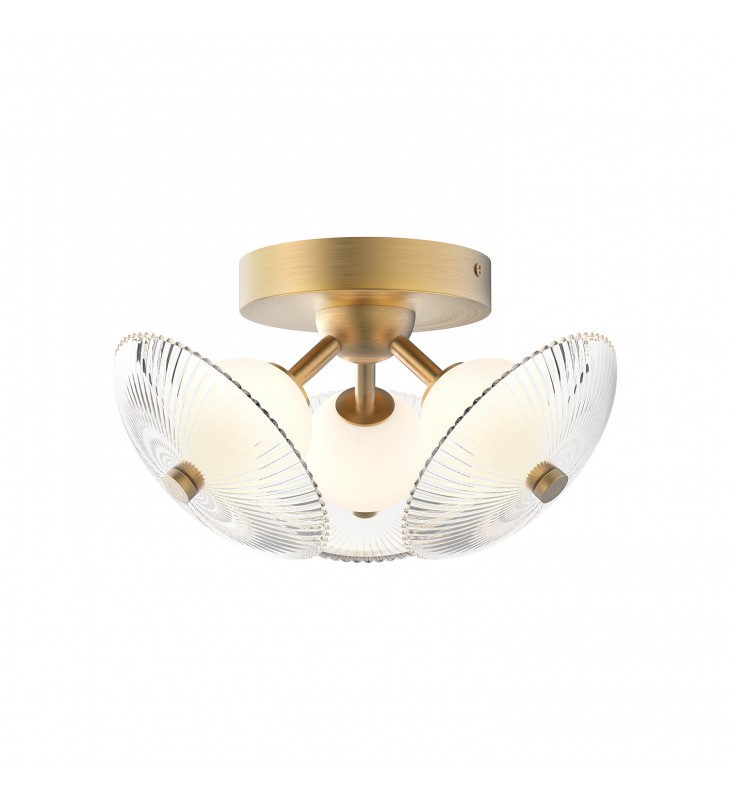 FM417604BGCR-Hera 12-in Brushed Gold/Clear Ribbed Glass LED Flush Mount