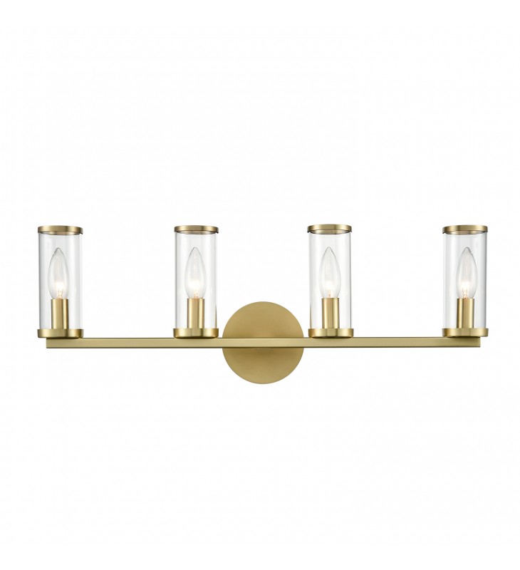WV309044NBCG-Revolve Clear Glass/Natural Brass 4 Lights Wall/Vanity