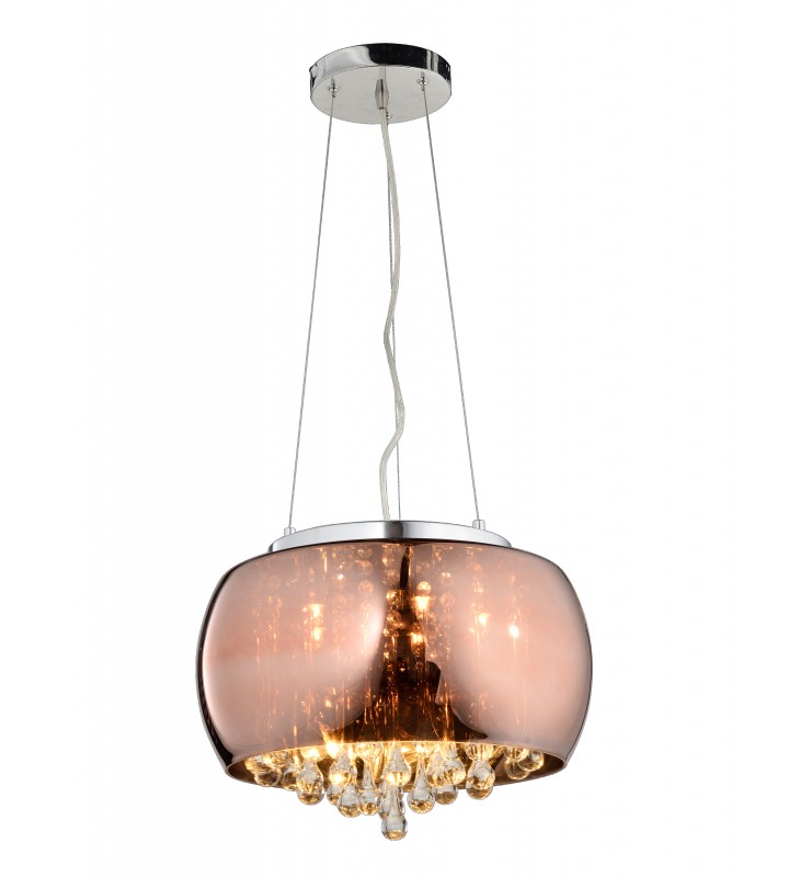 Product Feature : Clear Crystal Drop - Copper Color Glass Shade - Wire Length: 59"