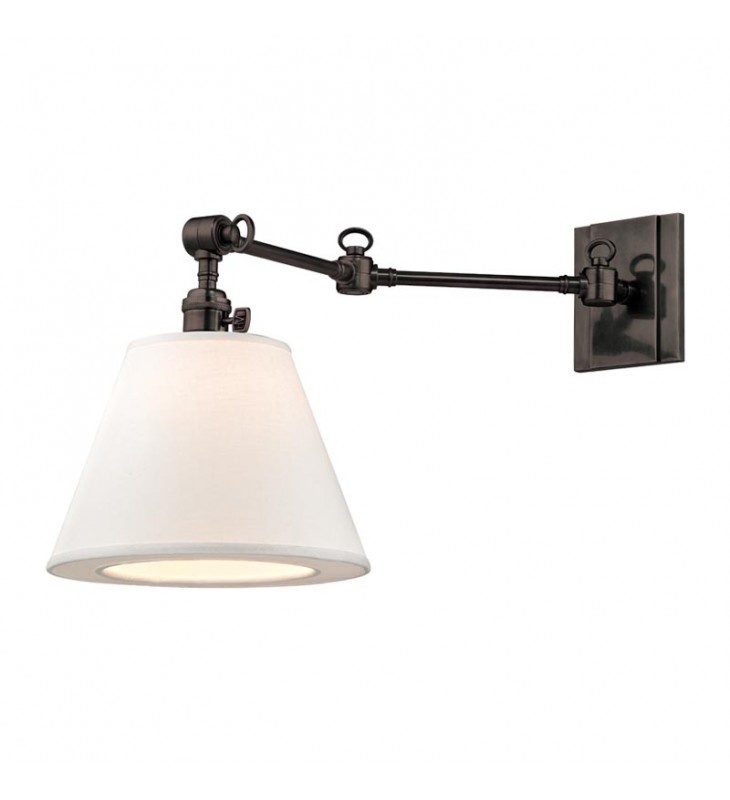 Versatile and attractive, Hillsdale combines the ingenuity of early-twentieth century task lighting with a smart decorative touch from the twenty-first. Vintage cast swivels give the sconces wide-range adjustability, while custom contemporary linen shades swath your space in soft ambient light.