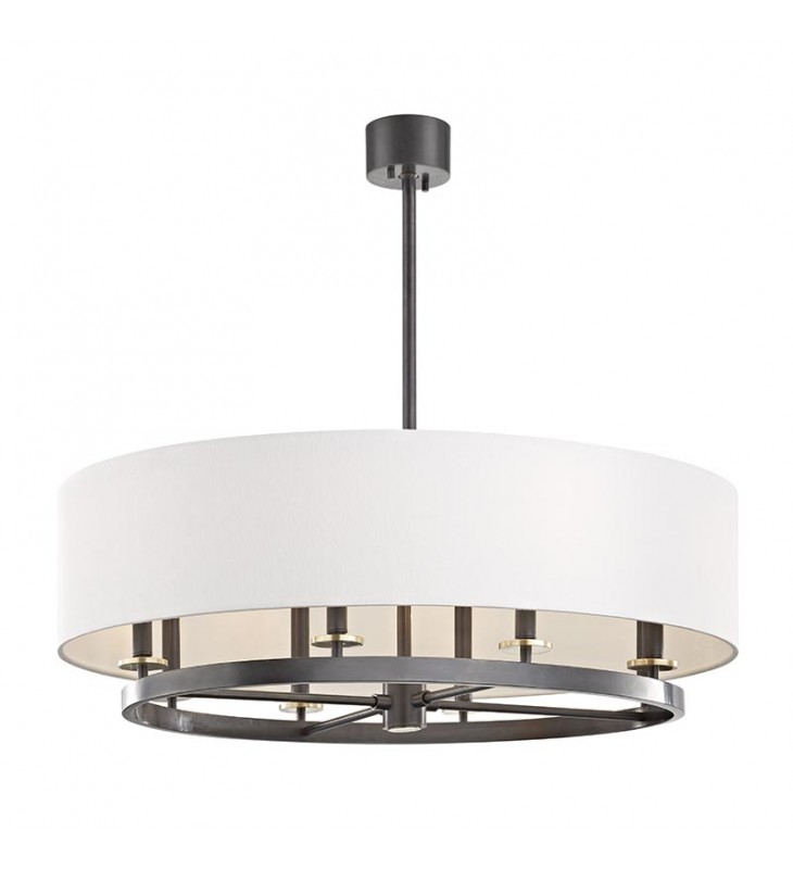 Durham sets a wheel alight, softened by a wide drum shade of off-white linen. Set in a streamlined style that doesn? evoke any specific age, Durham works especially well in transitional and neutral spaces.