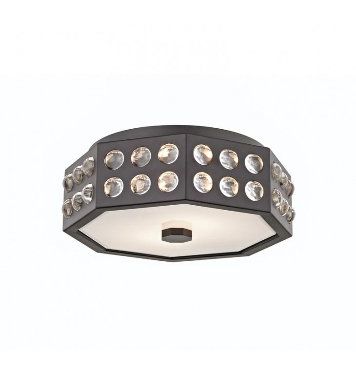 This octagonal flush mount allows more light to escape through its refractive convex glass along each side. The textured reverse side of this glass imbues a cozy diffusion effect on the light that escapes.