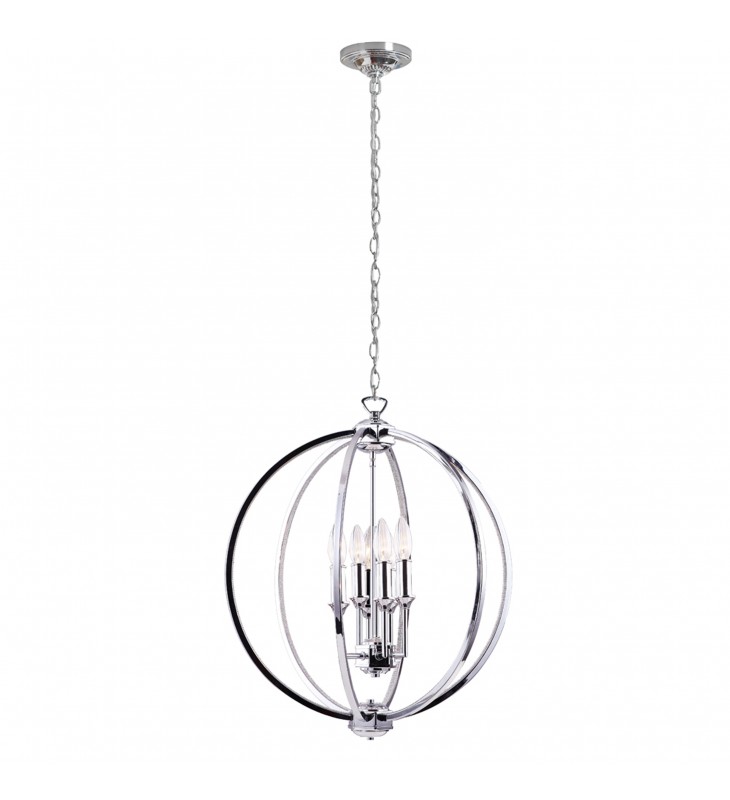 Dainolite Transitional Karland Hanging in Electroplated Polished Chrome Metal for the Ceiling with 6 bulb, E12 socket base 60 Watts max Dimmable and UL Approved for Damp Location with a 1 Year Limited warranty. Great for Dining, Foyer/Hall, rooms and Commercial use. Features include , ,