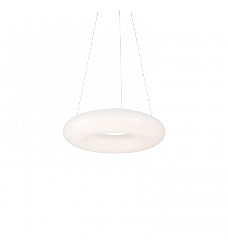 A radiant torus of bright, even illumination. Available in a variety of sizes and as either a pendant or flush mount, these halos of light adapt to any setting. Eternal and substantial.