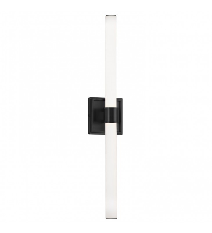 A tubular length of illuminated rod the Rona wall light is supported and clasped with a detailed cylindrical projection. The thick square outline of the attachment plate frames the lamp holder and echoes the refinement of present architectural trim. Available as either a sconce or vanity and in several curated finishes.