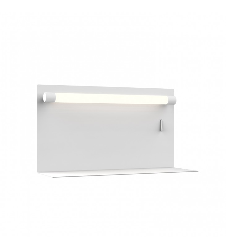 A tubular length of illuminated rod the Rona wall light is supported and clasped with a detailed cylindrical projection. The thick square outline of the attachment plate frames the lamp holder and echoes the refinement of present architectural trim. Available as either a sconce or vanity and in several curated finishes.